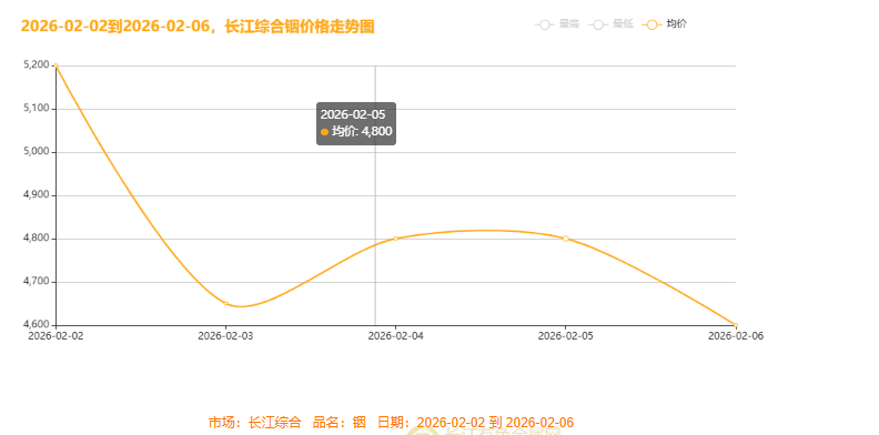 本周2026年2月2日至2月6日铟价格走势趋势图